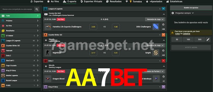 A aposta AA7Bet oferece aos jogadores a experiência mais conveniente de apostas em eSports!